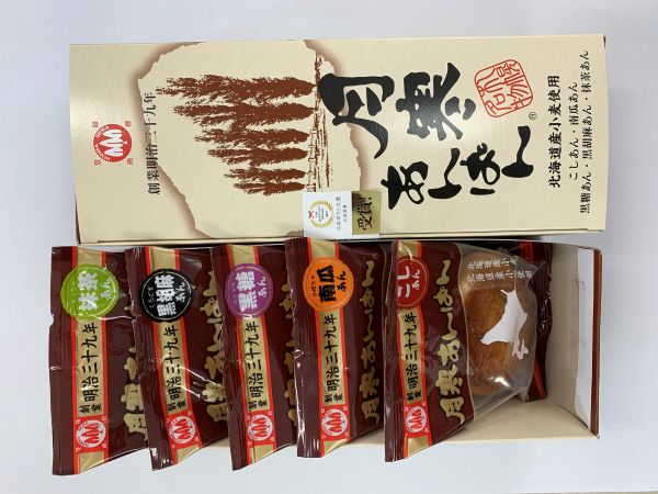 5種類の月寒あんぱん(こしあん・南瓜あん・黒糖あん・抹茶あん・黒胡麻あん)を詰合せにしました。手土産に最適です。