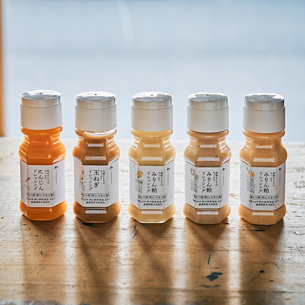 りんのひとさじのドレッシングシリーズは、晴れの国・岡山の豊かな自然と、生産者の想いから生まれた手づくりの逸品です。