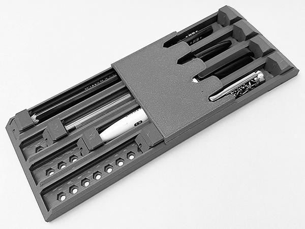 更に一般的な事務利用に加え、美術家の筆記具や各種プロの方々の棒状道具のご利用も想定して、手が届く位置に取り付けるためのビス穴も装備しています。