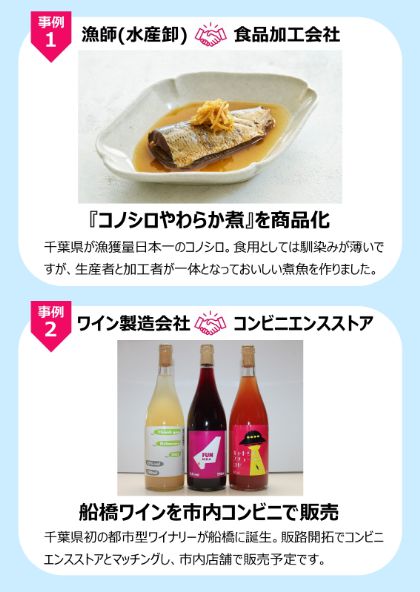 船橋市で事業をされている皆様のニーズやシーズをつなぎ、取引活性化を支援しています。活動9年間で約2500社を訪問し、専任のコーディネーターが仲介を行う顔の見えるマッチングを特徴として770件を超える実績を積み重ねてきました。船橋は農業・漁業・工業・商業など多様な産業が盛んで可能性に満ちています。マッチング先は、全国の事業者様が対象です。魅力ある船橋の事業者と繋がる機会をご提供しています。