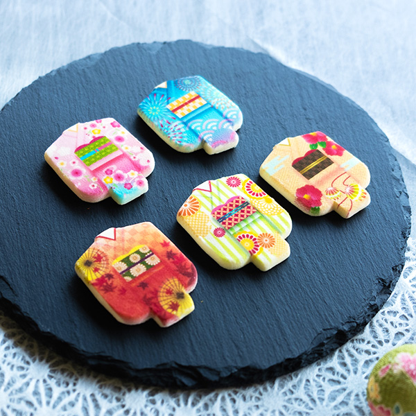 ホワイトチョコレートを生地に練りこみ、 ほろりと溶けるような新食感クッキーです。常温でも持ち運びでき、和風な柄は海外の方にも人気です。