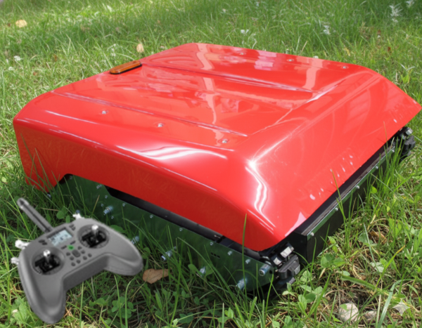 左右の独立したサスペンションにより、最大45度の斜度でも作業可能な電動草刈り機。