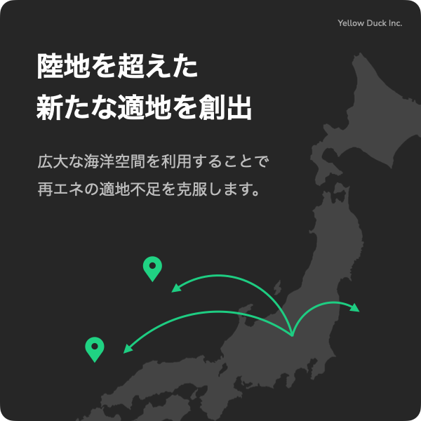 広大な海洋空間を利用することで、再エネの適地不足を克服します。