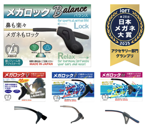 メガネを快適に使用する為のズレ防止アイテム「メガロック」「セルシール」や、メガネに簡単に取り付けることが出来る老眼鏡「ローグラスL」、そして昨年の日本メガネ大賞アクセサリー部門グランプリを受賞した「メガロックバランス」等のメガネ関連便利グッズを展示いたします。