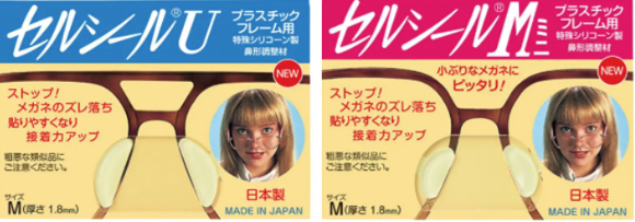 『セルシールU』『セルシールM(ミニ)』は鼻当てが固定式のメガネフレームに取付けるアイテムです。