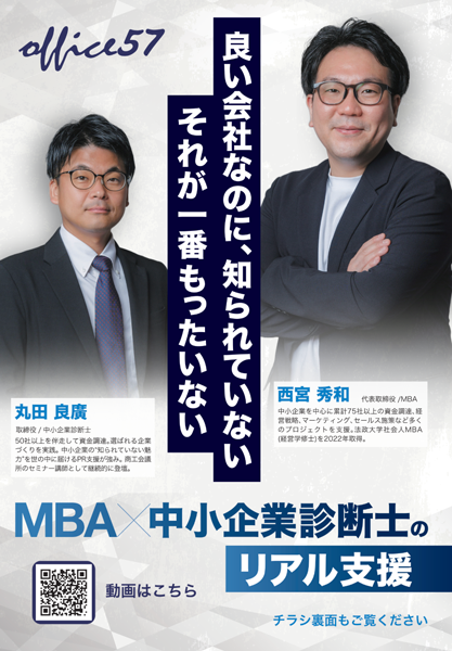 株式会社office57では、MBAホルダーや中小企業診断士の資格保有者が経営戦略の立案からオンライン・オフラインのマーケティング施策まで、実行に直結する支援を提供。豊富な現場経験を持つ専門家が、課題解決と成果創出を実現します。
